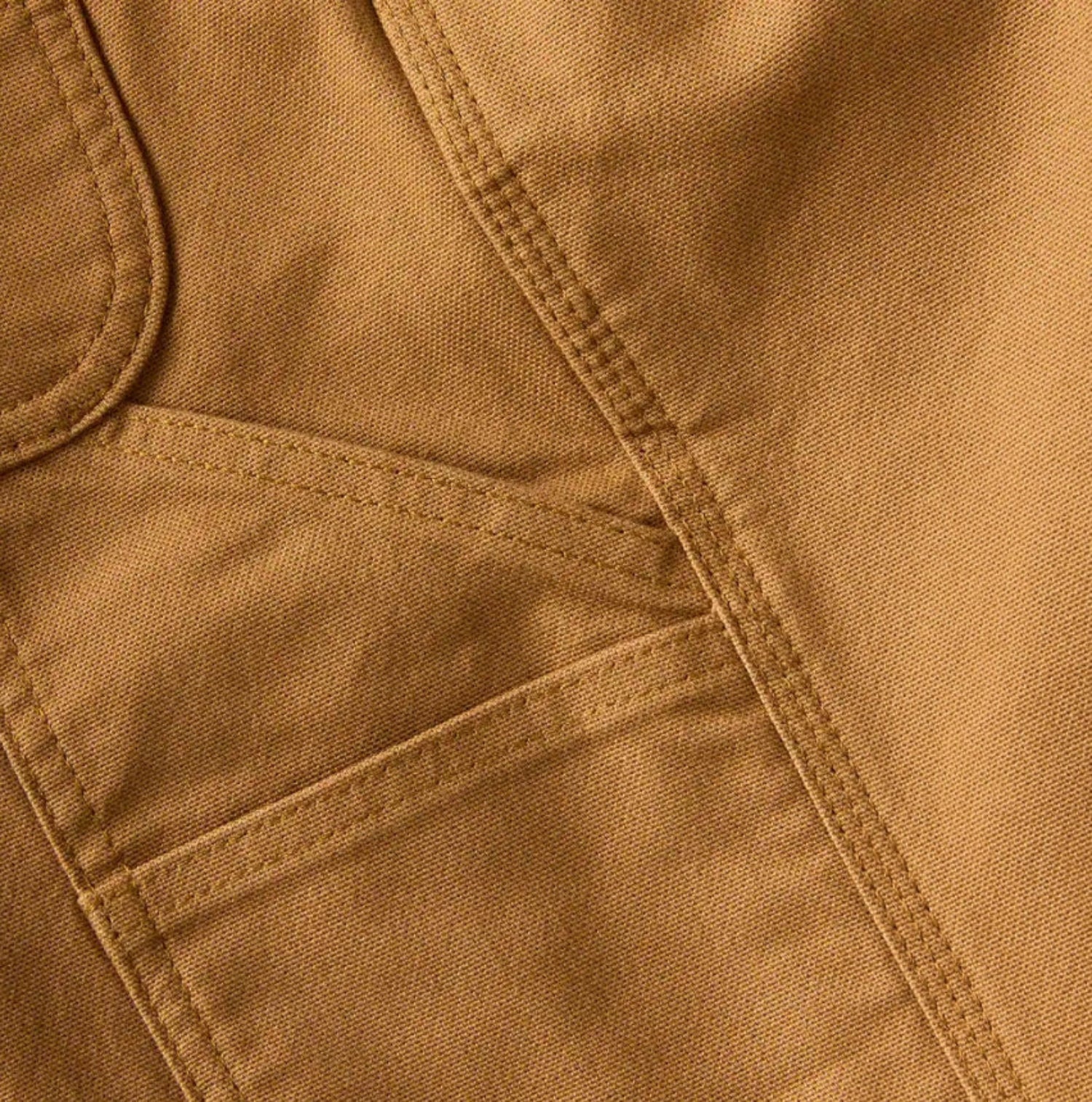 A workwear essential for any trade, these Carhartt duck dungarees feature our iconic duck canvas material with built-in flex for easy movement and trusted durability. Multiple tool pockets and a utility loop keep workday essentials within reach. The loose fit offers plenty of room to move through the seat and thigh.