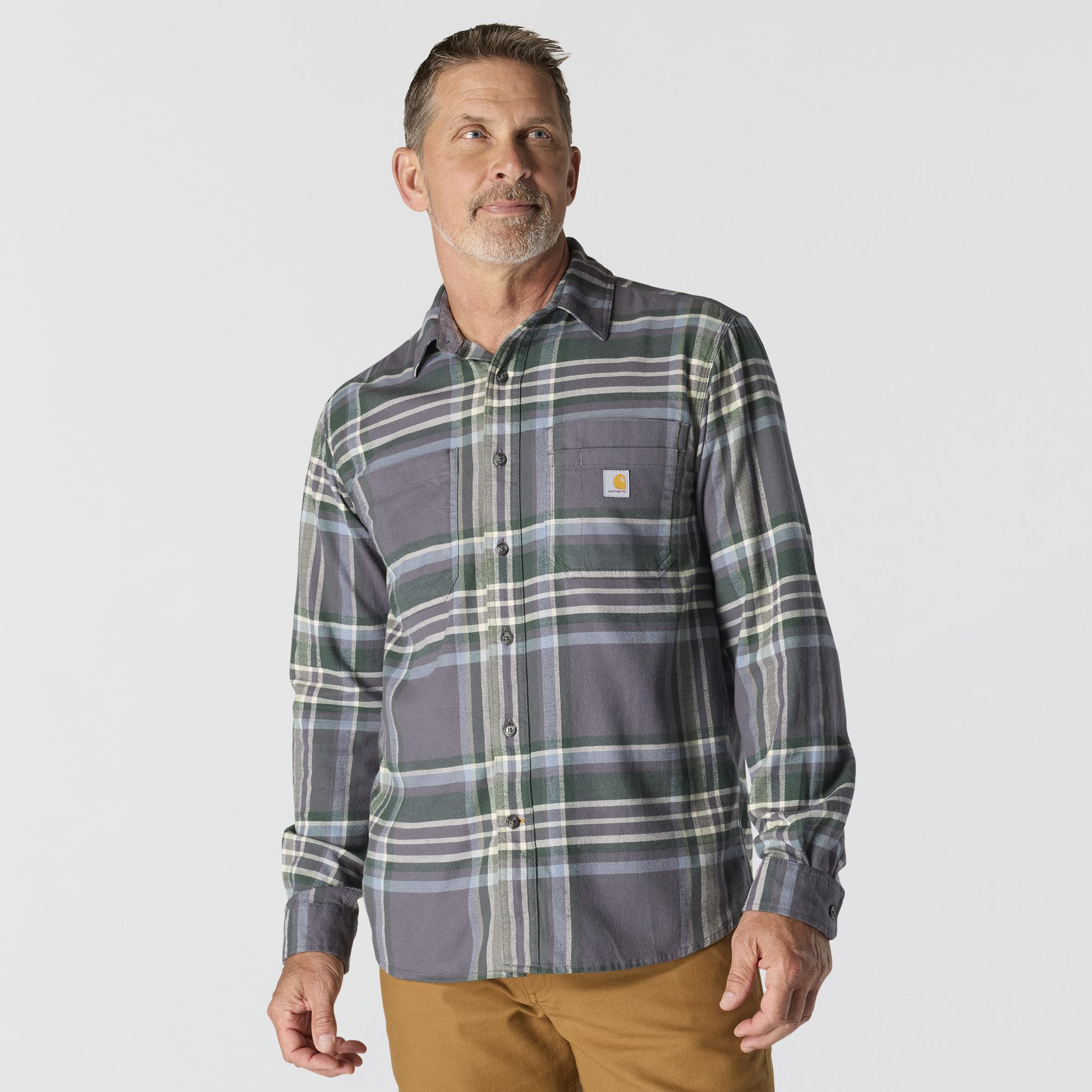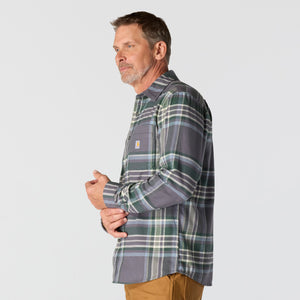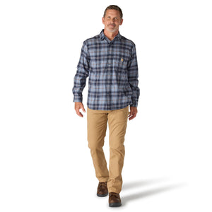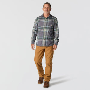 Made to be worn tucked or untucked, this men's plaid flannel shirt jacket features a midweight cotton blend with just the right amount of stretch for an unrestricted range of motion. A loose fit allows for easy layering and a natural range of motion.