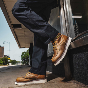 The Reclaimer is a classic wedge work boot that embodies the integrity and toughness synonymous with the world’s leading machinery brand. This moc toe design features a waterproof leather upper, offering both soft and steel toe options to suit your needs. The stable wedge outsole ensures the traction you expect, making the Reclaimer the perfect blend of durability and performance.