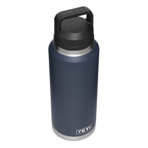 The YETI 46 oz. Rambler® Bottle with Chug Cap is built with peak durability and performance. The two-part chug cap is topped with a TripleHaul™ handle, making it easy to grab on the go. It's designed be dishwasher safe and leakproof so that you can quickly toss your bottle in your bag before you leave for the day ahead.
