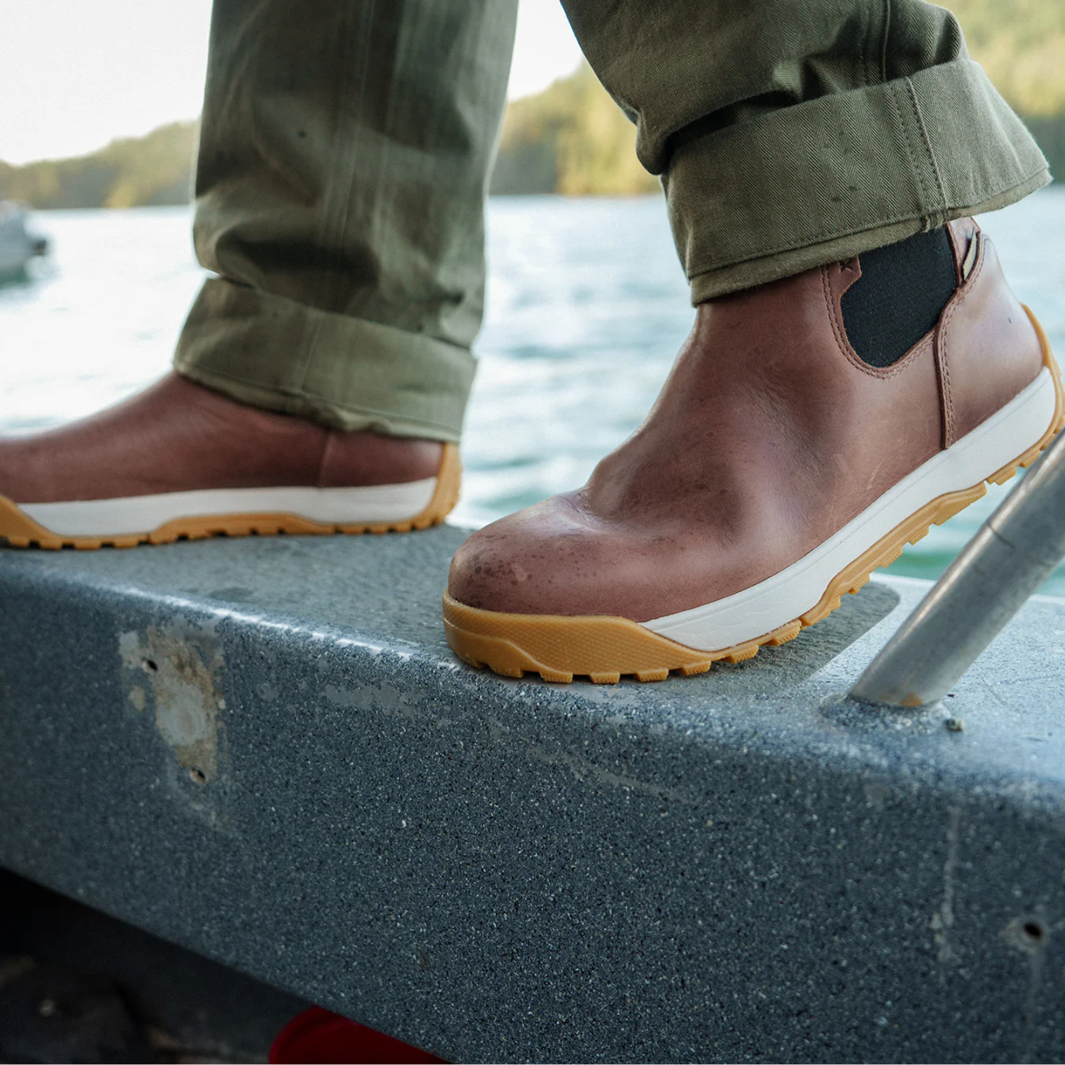 The all new Leather Ankle Deck Boot is built for all. From working on the boat or the ranch to dressing up for a night out, the Leather ADB pairs function with style in a versatile silhouette. Waterproof and salt water resistant leather on the upper is paired with a comfort EVA insole make it the ultimate leather boot for all day wear. Matched with a slip resistant and non-marking rubber outsole, these boots are designed for life on and off the water.