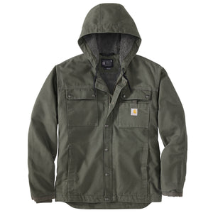 This men's jacket is built to endure cold, wind, and tough days on the job. Rugged without being rigid, it's made with durable cotton duck and is reinforced with Cordura® at wear points along the cuffs. This warm layer is lined with soft sherpa fleece through the body and hood, with warm quilted nylon through the sleeves.