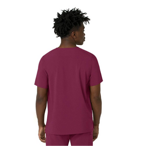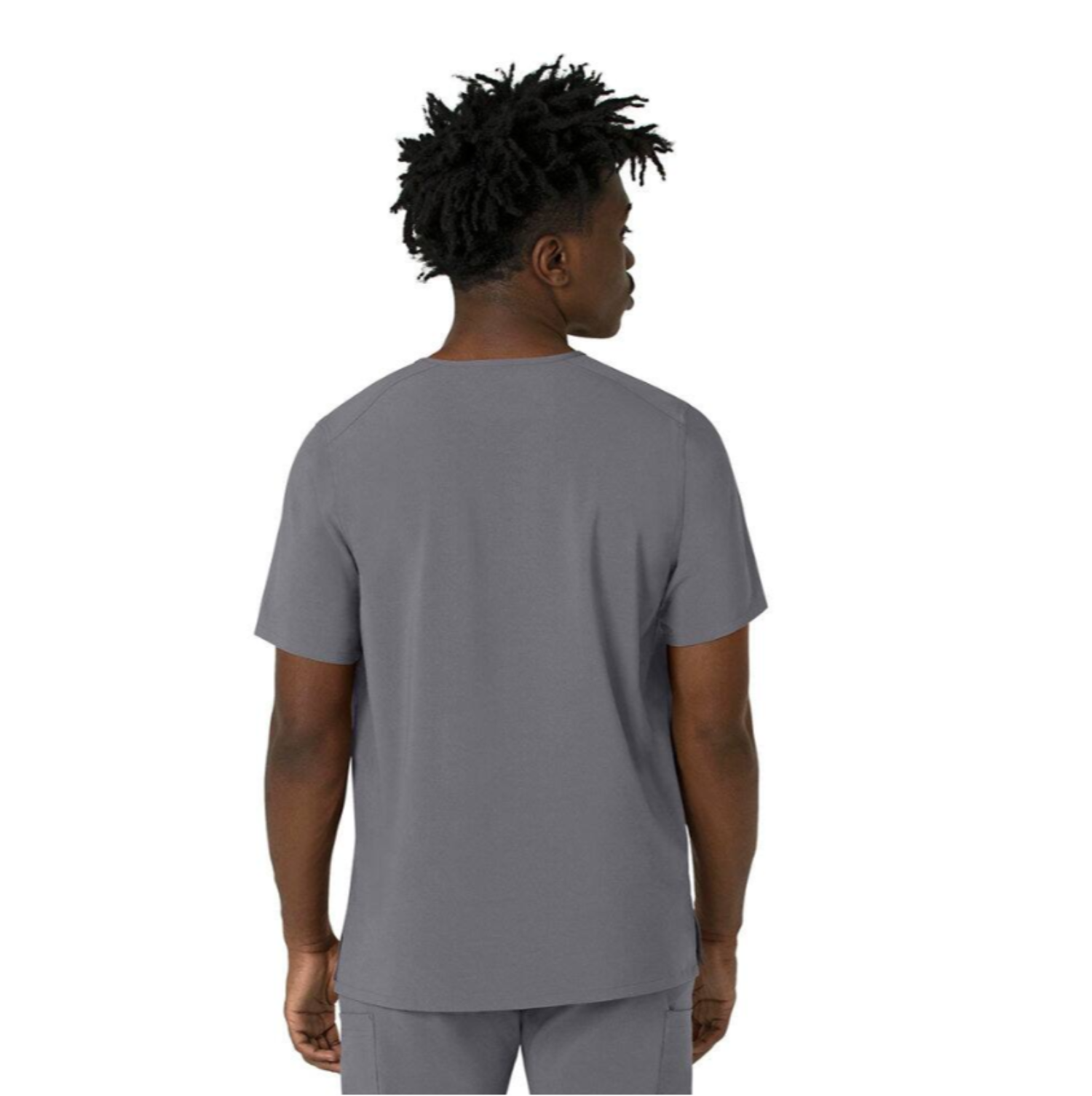 You need comfort and utility you can always count on, from the moment a shift starts until you're ready to head home. This men's scrub top gets it, and it's built to last through every demanding day. It's made with a soft, stretchy material that includes micro ripstop for durability. Keep your most-used items right where you need them in a chest pocket that has a pen slot, plus two larger pockets on the side that allow for easy access to tools and supplies. Whenever you reach up high or stretch across a surface, you'll get full range of motion with knit panels on the back arm. Side hem vents add even more flexibility while creating a clean look that lets your scrub top drape with ease over your scrub pants. Secure your badge in place with a loop at the shoulder. Made for all the demands of your day, this scrub top wicks moisture to keep you confident and dries quickly to keep you comfortable.