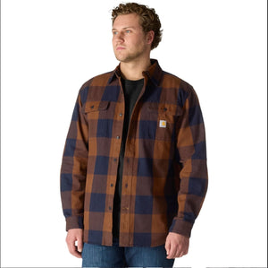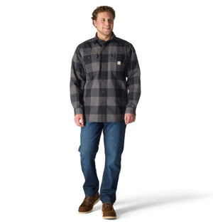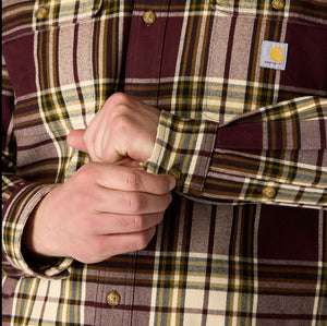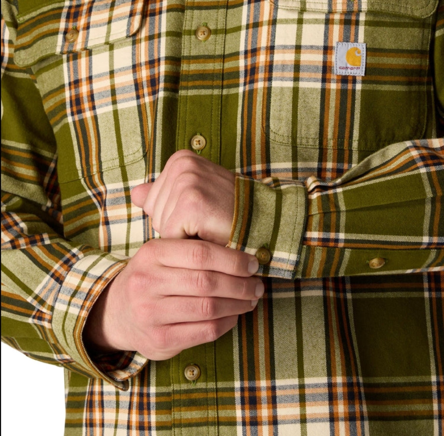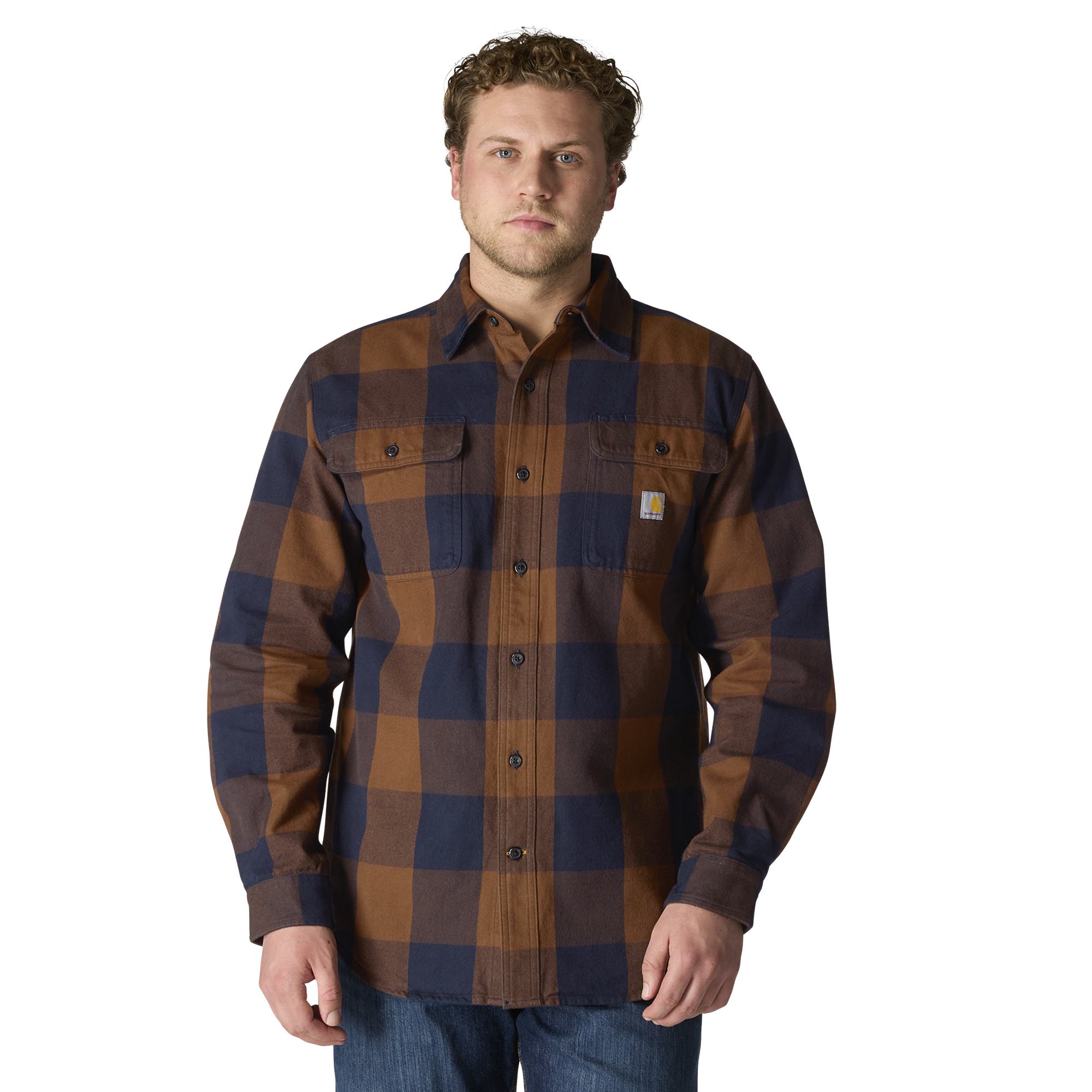 Built for cooler weather and rugged days, this men's Carhartt flannel shirt features a heavyweight cotton flannel with a brushed finish for a soft feel. A loose fit allows for easy layering and plenty of room to move.