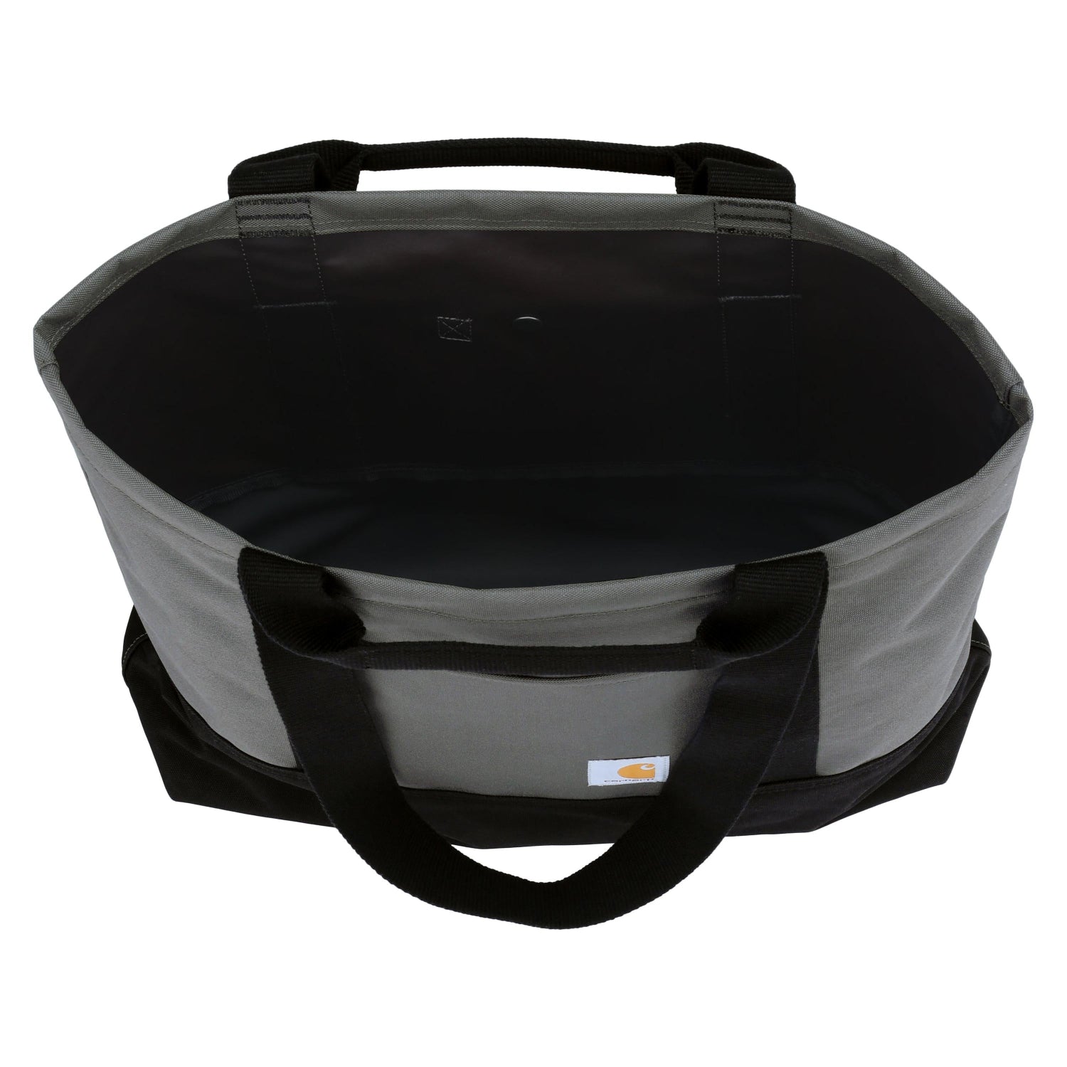 Sturdy, water-repellent fabric and a utilitarian design make this tote your go-to for hauling jobsite gear, camping supplies or groceries. A triple-stitched base offers extra durability. Outside pockets keep your essentials within easy reach, and the coated interior makes cleanup easy.