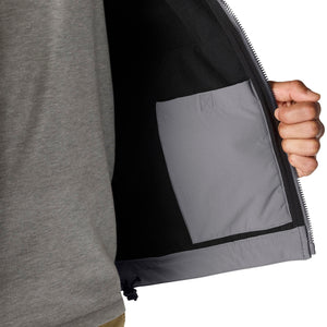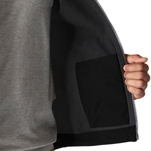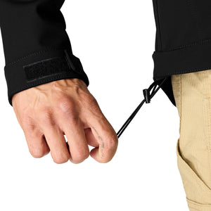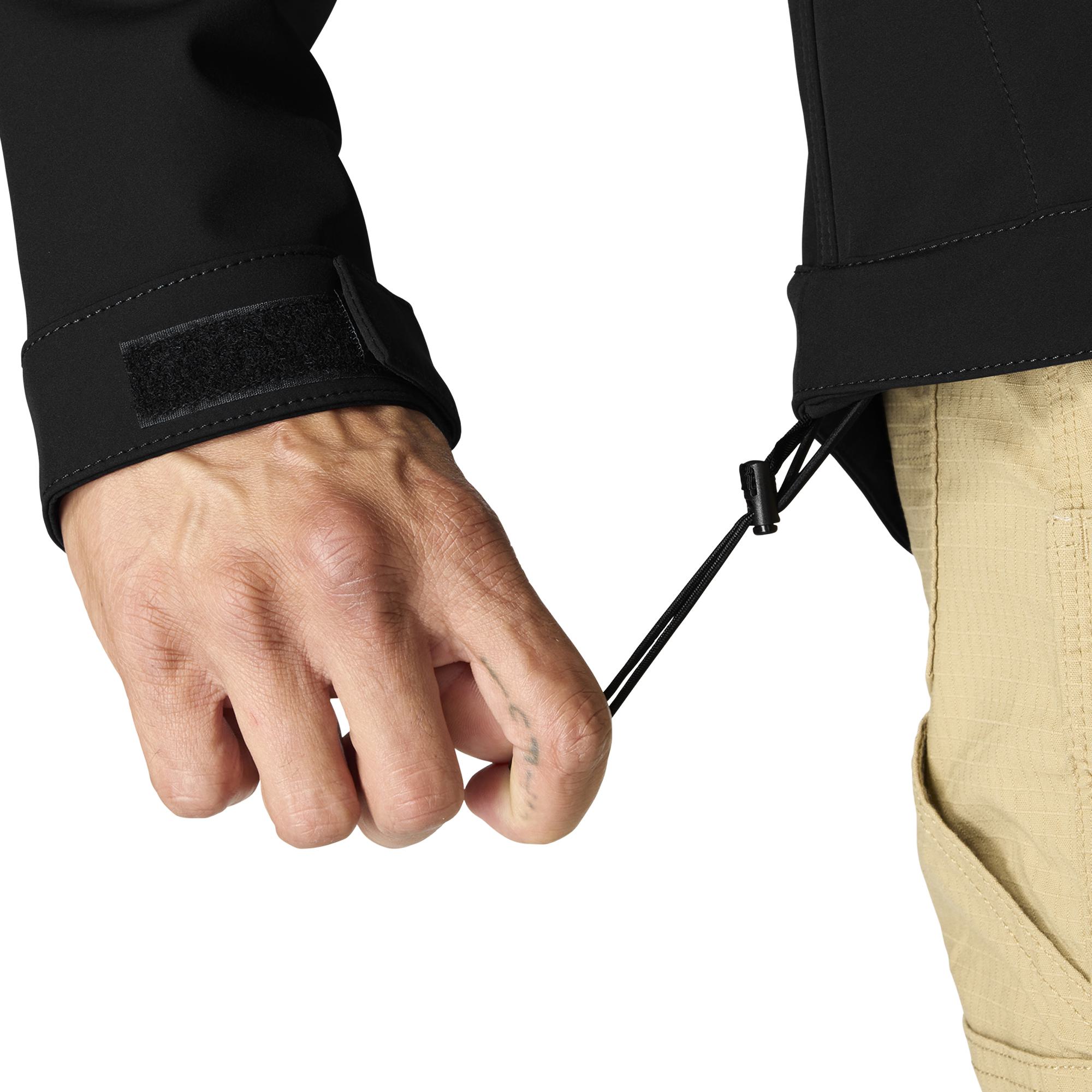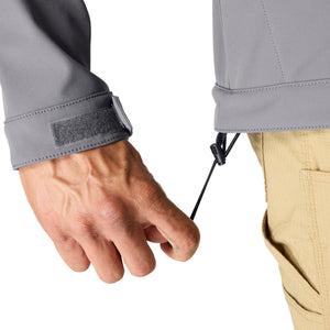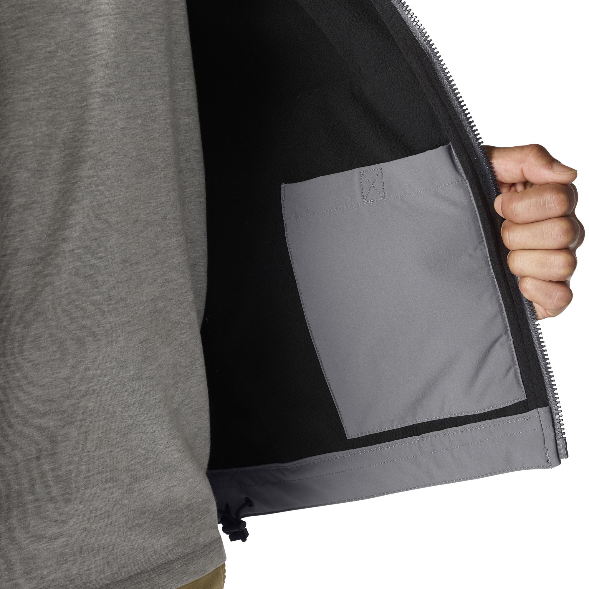 Keep working through gray, cloudy days in this men's softshell water-resistant jacket. It's made to repel light rain and fight off gusts of wind. It has built-in flex so you can move without restriction, and a mock-neck collar for a little extra coverage. A relaxed fit gives you room to move.