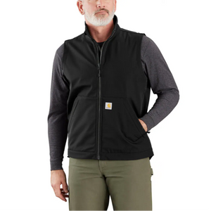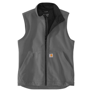 This men's softshell vest is designed to tackle the elements. Work outside in comfort with features made to protect you from wind and water. It's longer in back and has a relaxed fit, so you can move freely and focus on the task at hand.