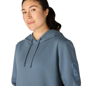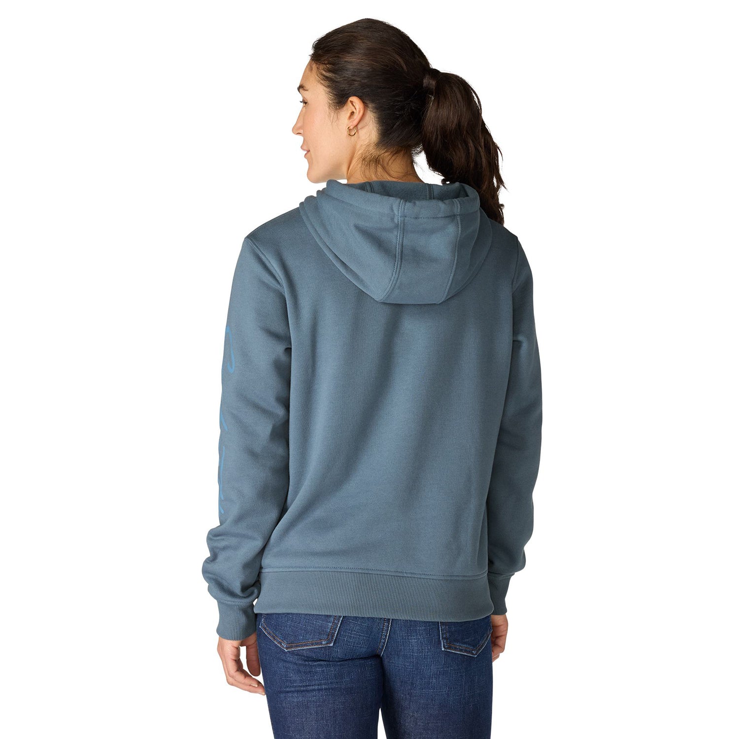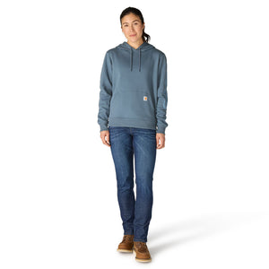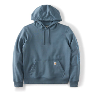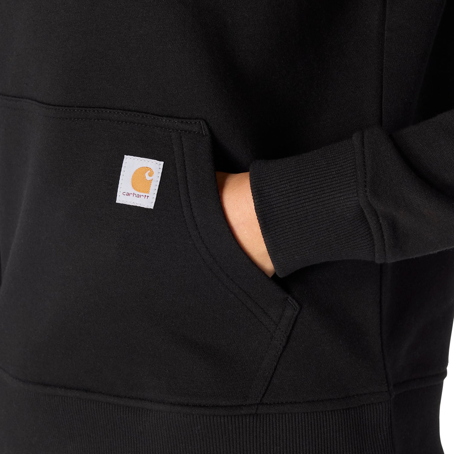 Show your Carhartt pride in this women's hooded sweatshirt featuring graphics on the sleeve. It's built from a lightweight cotton-blend fleece with a ribbed hem and cuffs that hold their shape. Made for casual comfort with a relaxed cut and three-piece hood.