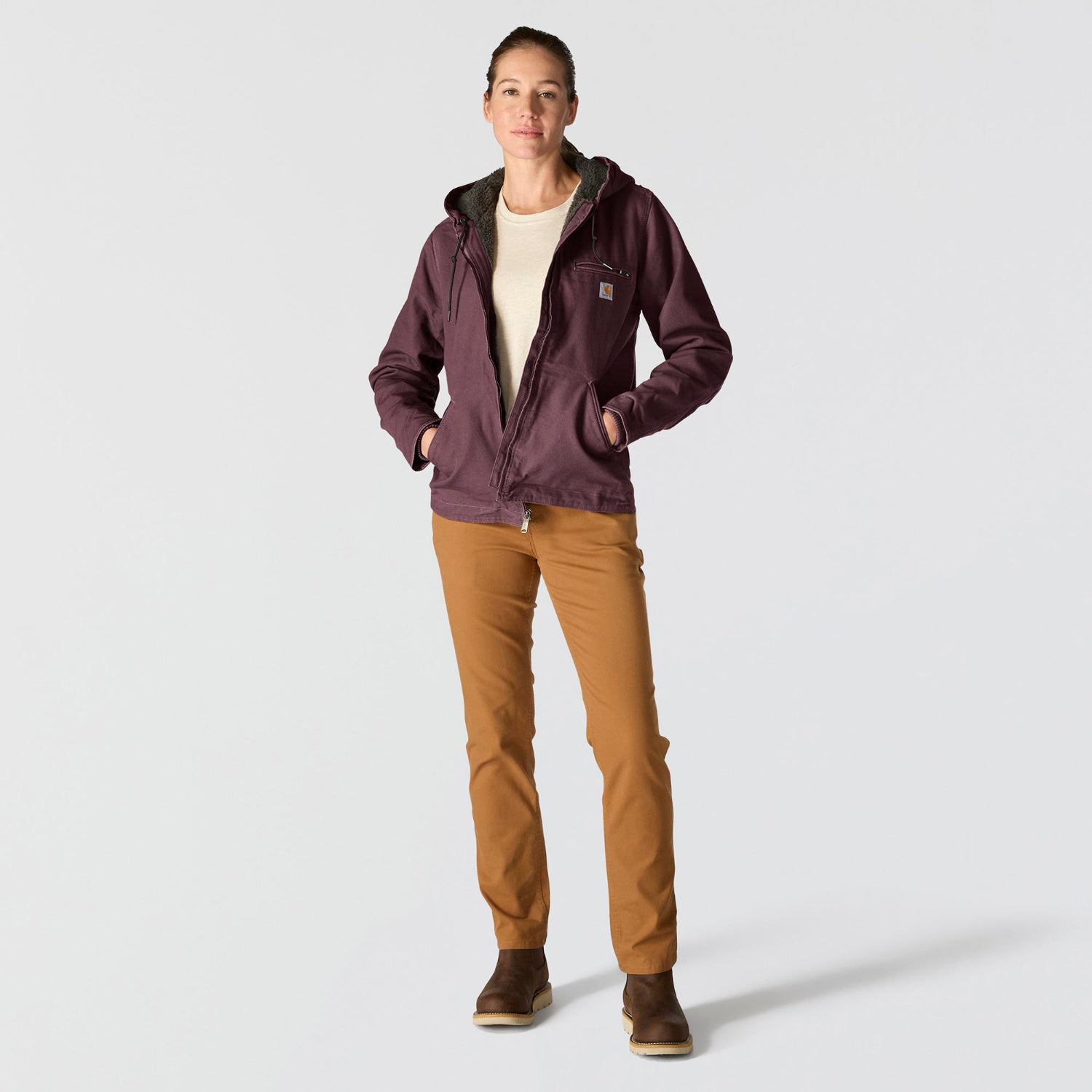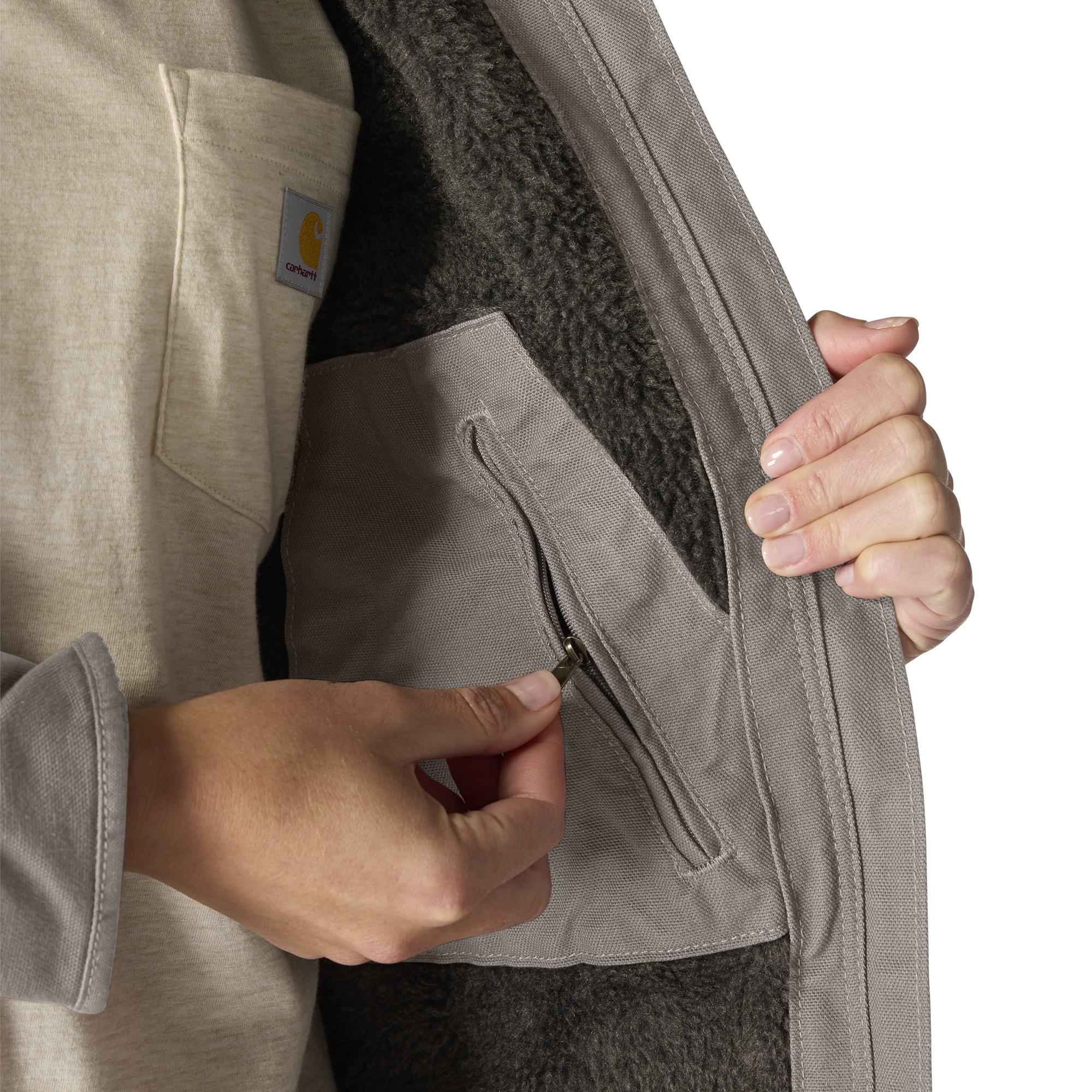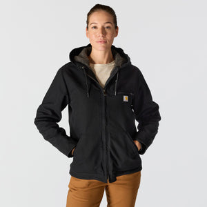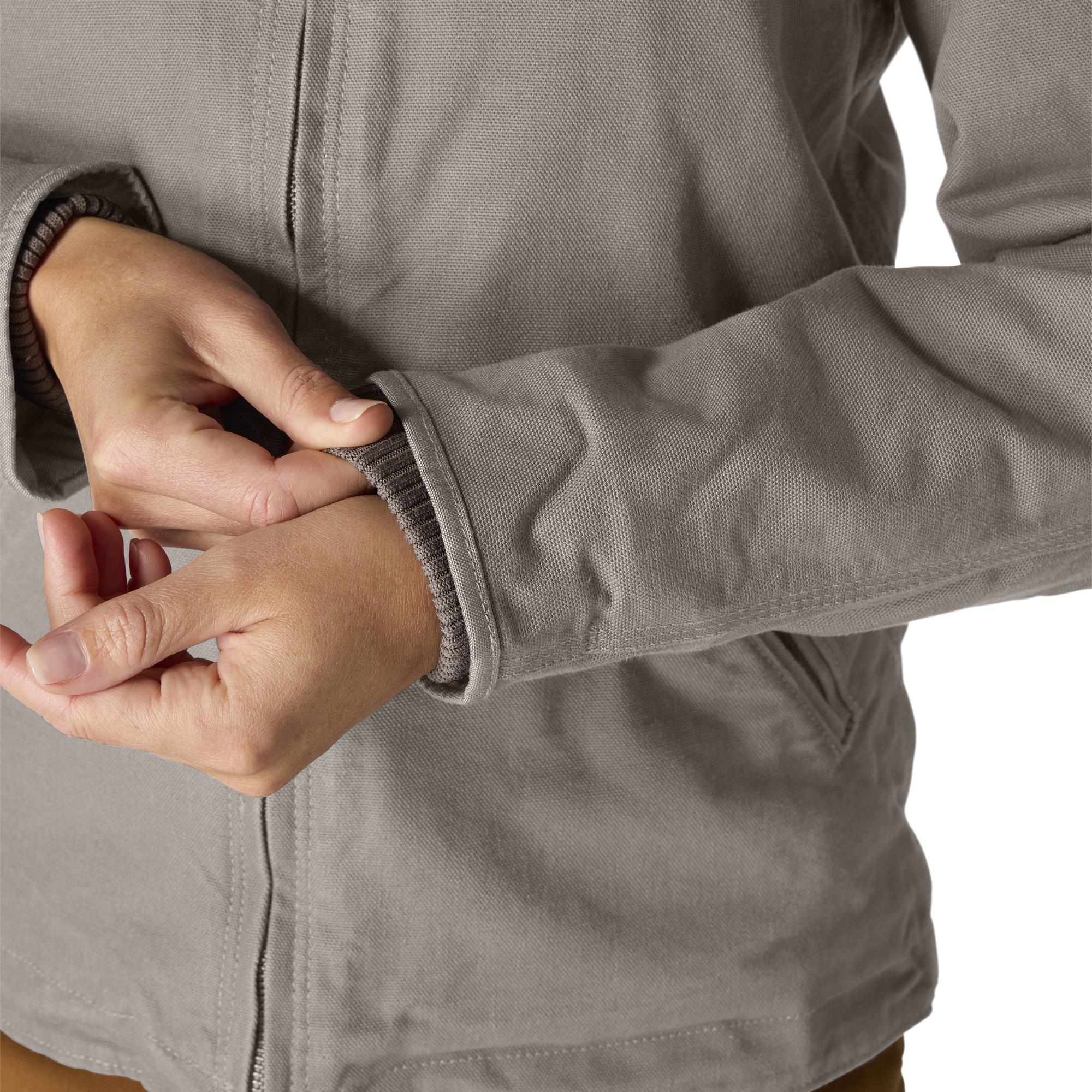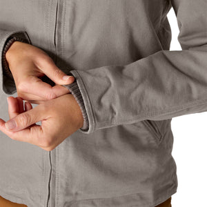 This women's jacket is made with cotton washed duck fabric that provides a tough exterior making it extremely durable and perfect for those cold days on the job. It is lined with sherpa to add extra warmth.