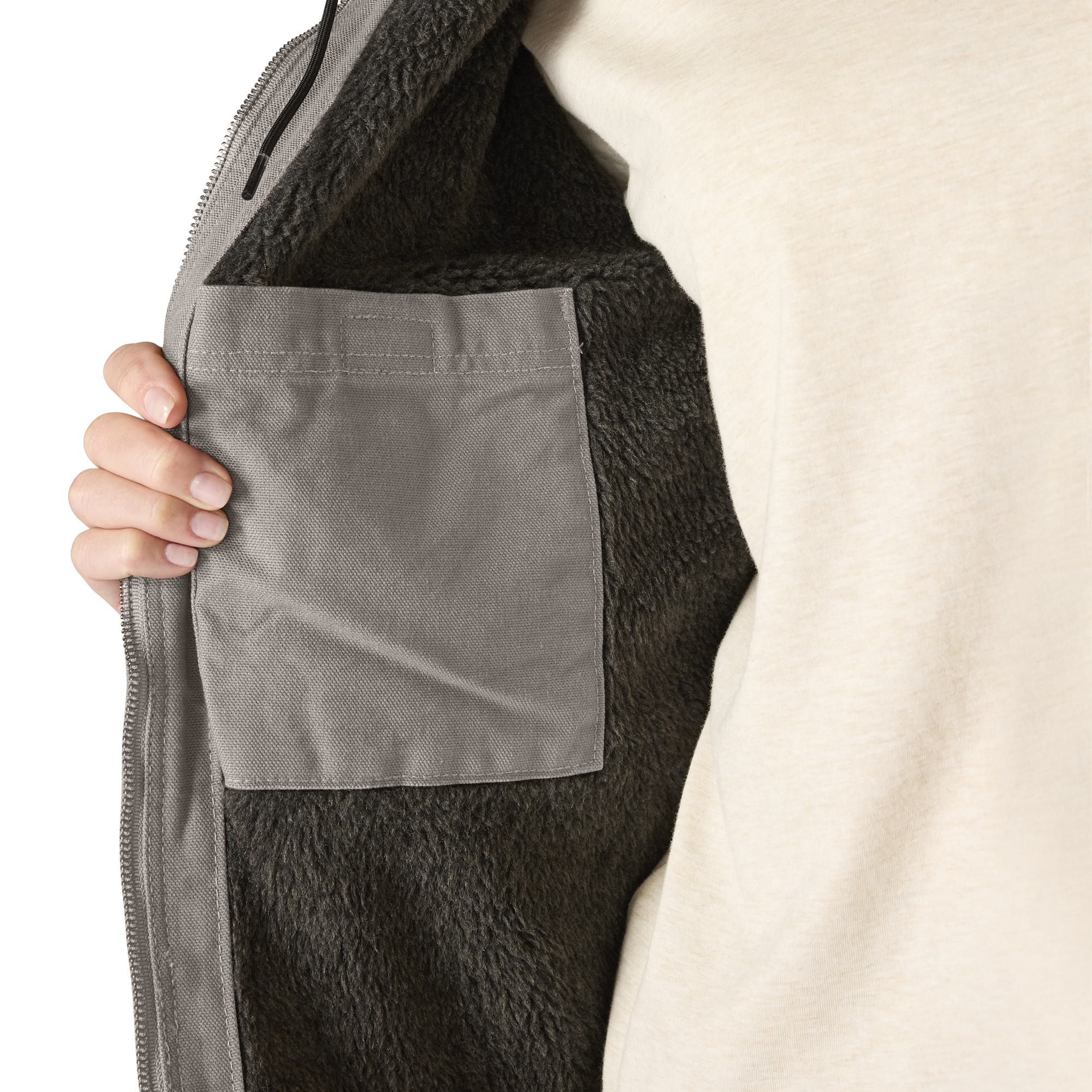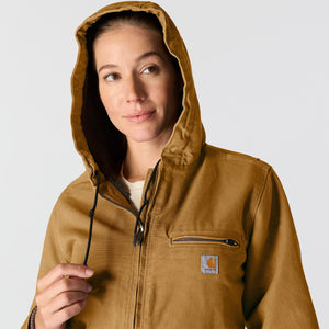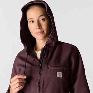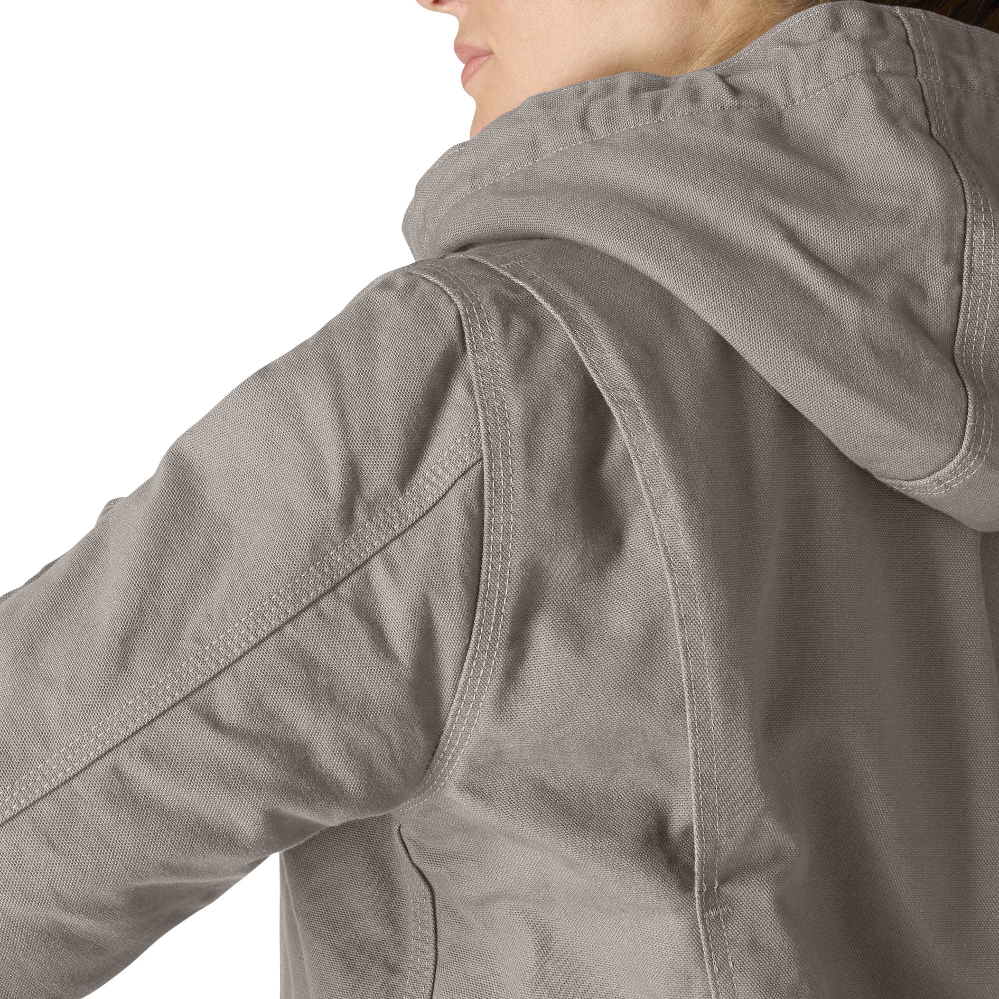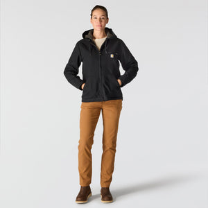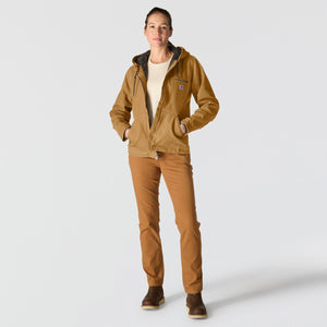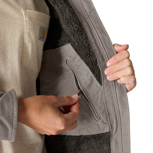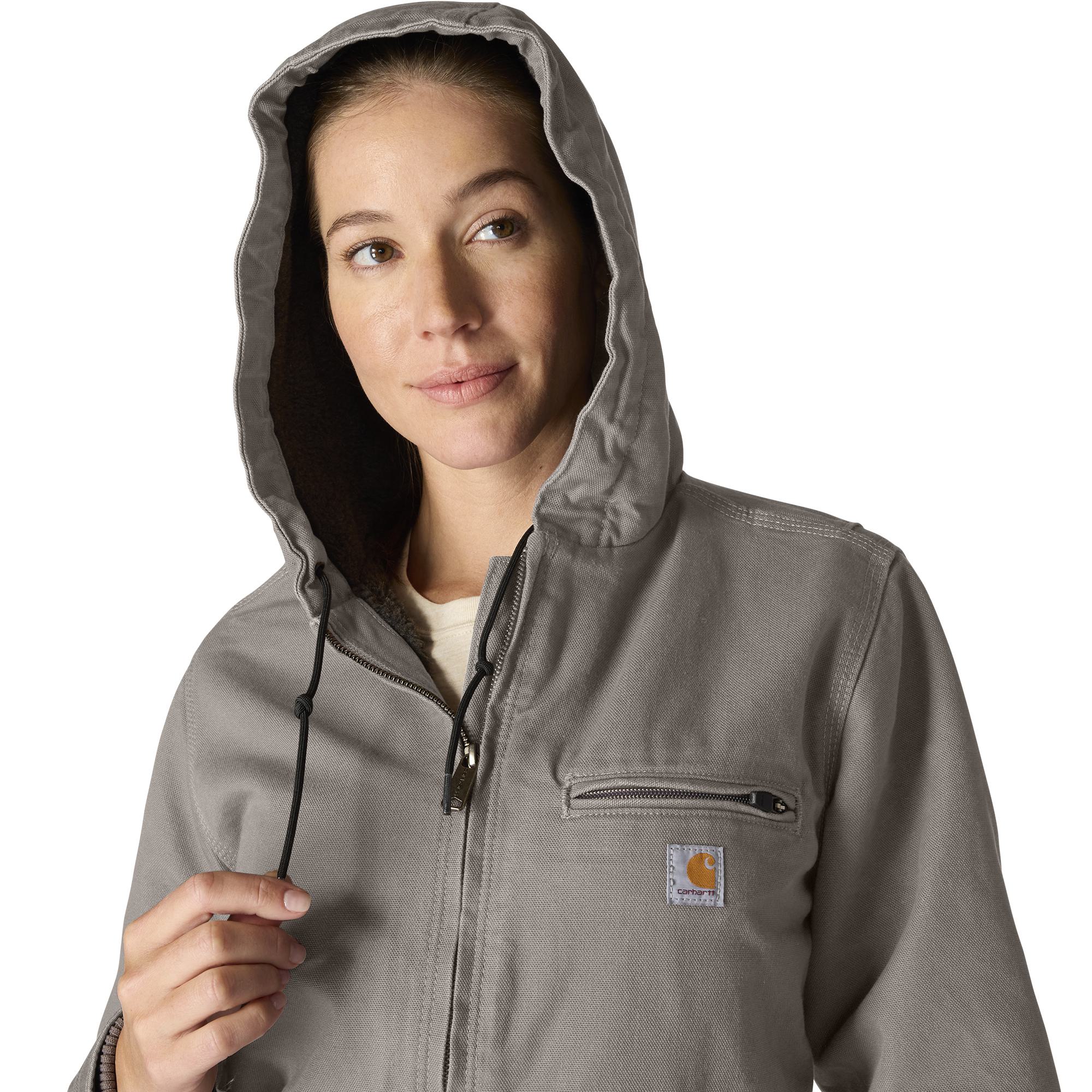This women's jacket is made with cotton washed duck fabric that provides a tough exterior making it extremely durable and perfect for those cold days on the job. It is lined with sherpa to add extra warmth.