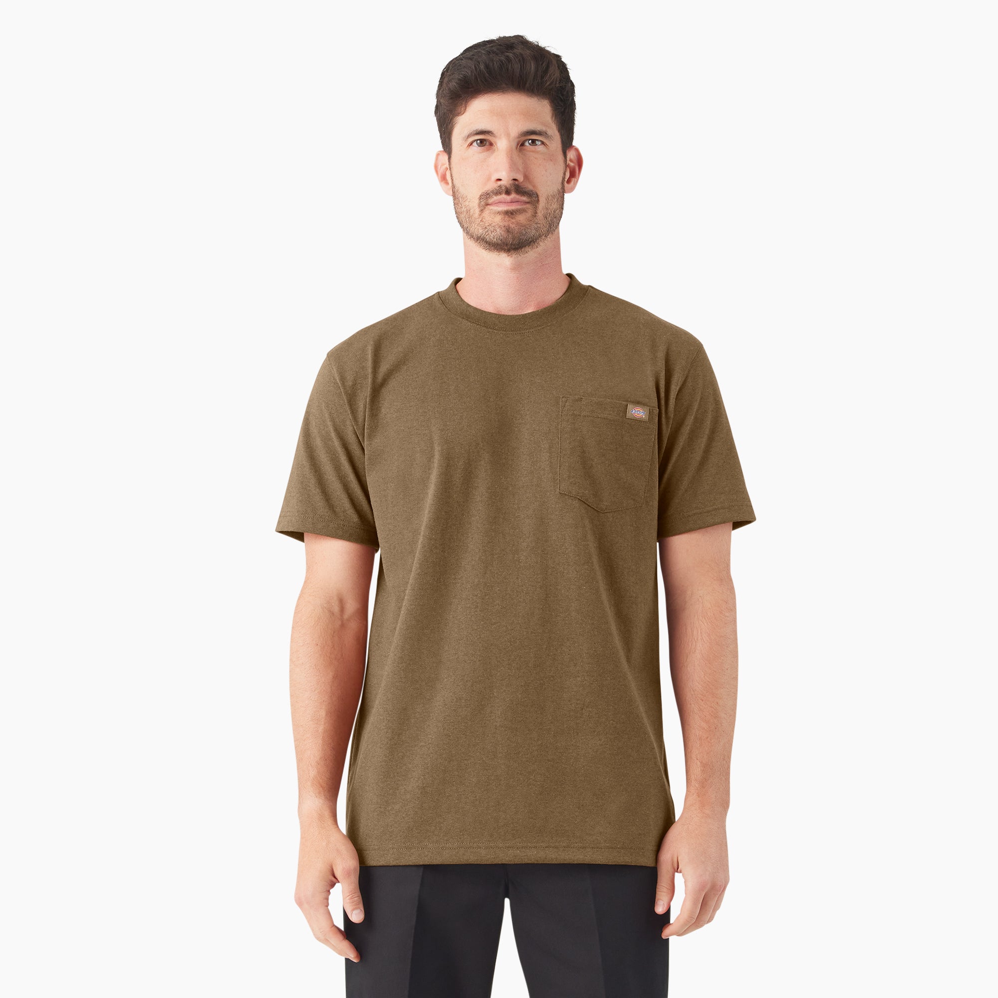 Dickies Men's Heavyweight Heathered Short Sleeve Pocket T-Shirt is a long-lasting workplace tee. Get the job done thanks to this durable heavyweight heathered cotton/polyester blend that stays comfortable throughout the workday and beyond. Store writing tools in its chest pocket with pencil divider, finished with a Dickies logo. The reinforced neck and shoulder seams are built to last, while the tagless neck label ensures an even more comfortable fit so that you can focus on the task at hand. Wear it alone or as a layer.