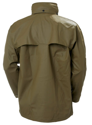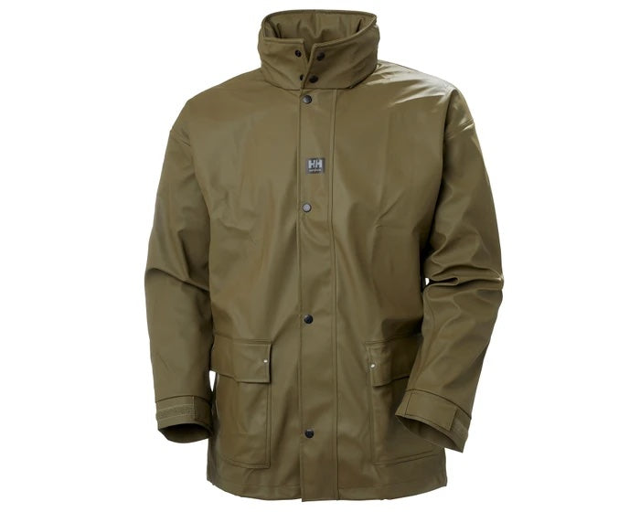 This practical work jacket is made of a comfortable knitted polyester base fabric that has been coated with stretch polyurethane for easy mobility and complete waterproof protection. It has a back cape design that provides ventilation, keeping you comfortable while you work. For leak prevention, the jacket features MicroWeld seams, a pair of waterproof pockets and a snap-close storm flap over the front zipper. The sleeve cuffs are adjustable and there's a hood for extra protection that tucks neatly into the collar when not required.