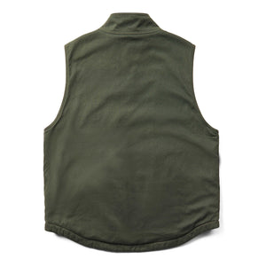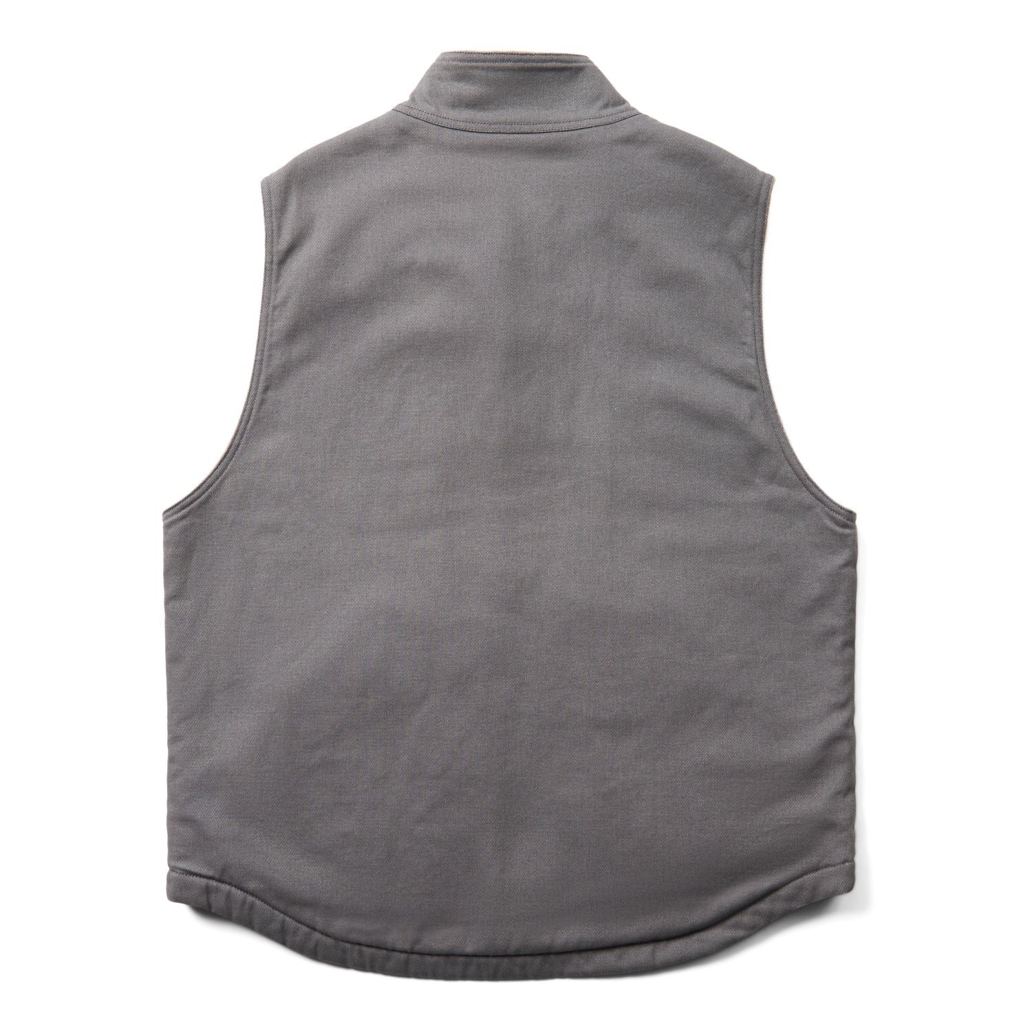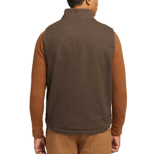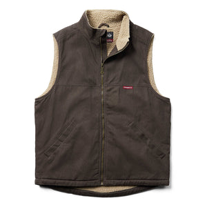 Say hello to your new favorite vest! Made with 100% cotton twill and lined with cozy polyester sherpa fleece, this vest is perfect for layering. It features rolled shoulders, a full zip-through collar, an extended back hem, and a stylish metal logo zipper pull. The self-fabric beard guard at the top of the collar adds a touch of comfort. With this vest, you're in for a rugged, classic style.