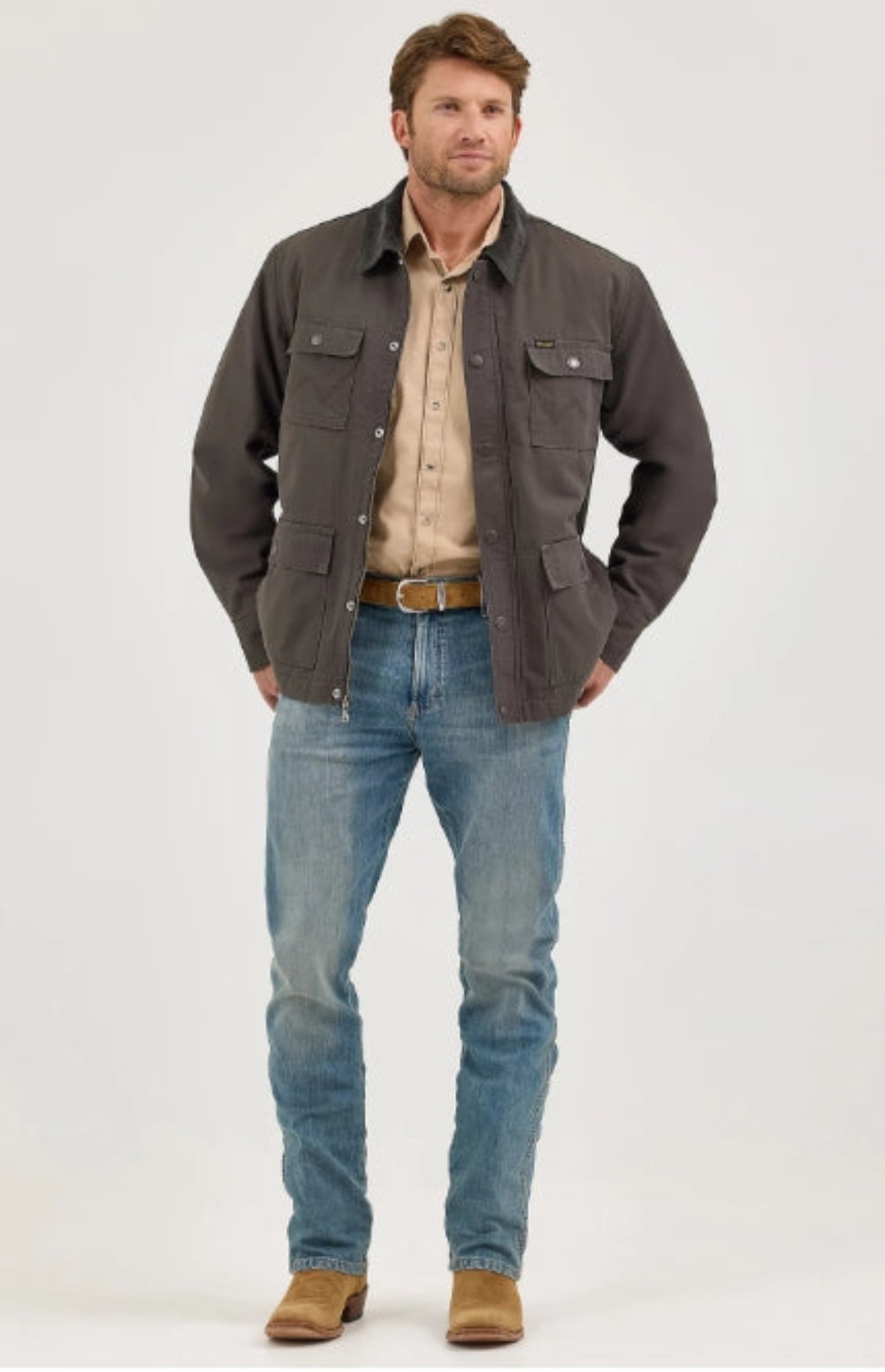 When it comes to cold weather, this Men’s Western Lined Zip Barn Coat has your back. This 100% cotton jacket comes with a quilted flannel lining for warmth as temperatures dip, as well as corduroy at the collar and cuffs for extra comfort. Between the zipper and snaps, this jacket will keep the cold at bay. Plus, it comes with two chest pockets with our signature “W” stitching and two side pockets to warm up your hands or store your essentials.
