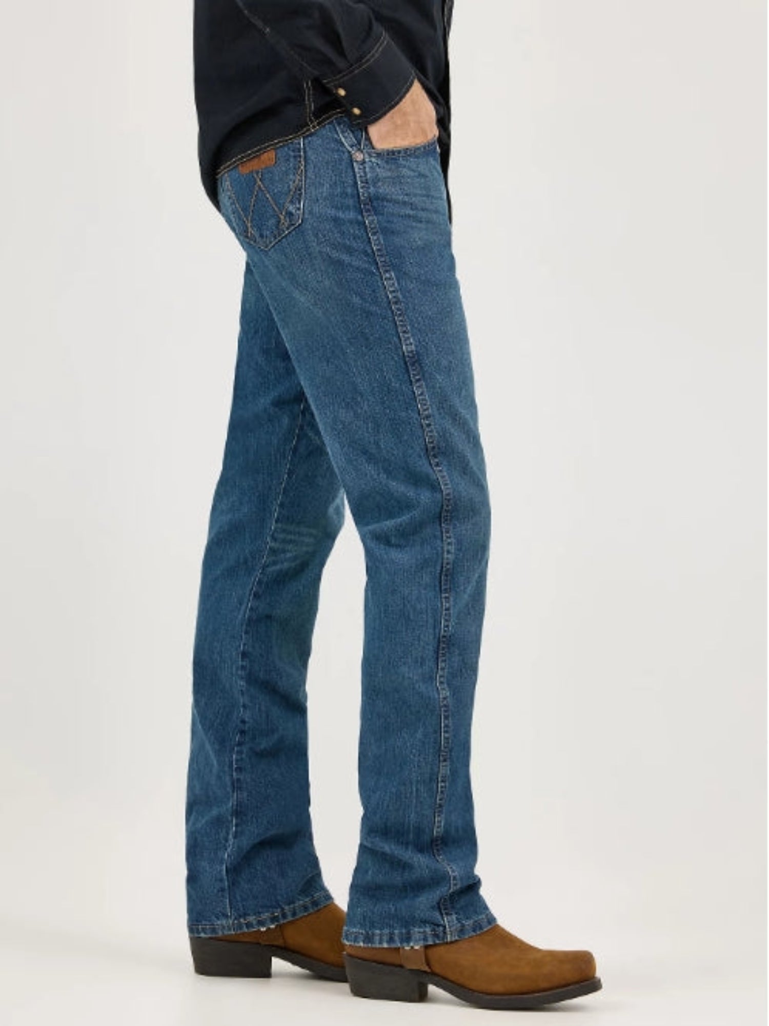 Wrangler® Retro® jeans are a modern take on our authentically Western jeans. They offer a comfortable mid rise, relaxed fit through the seat and thigh, and a leg opening that fits perfectly over your favorite pair of boots. Speaking to the Western heritage with a modern sensibility, our men's relaxed fit bootcut jeans are everything you want in a pair of jeans.