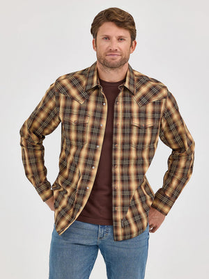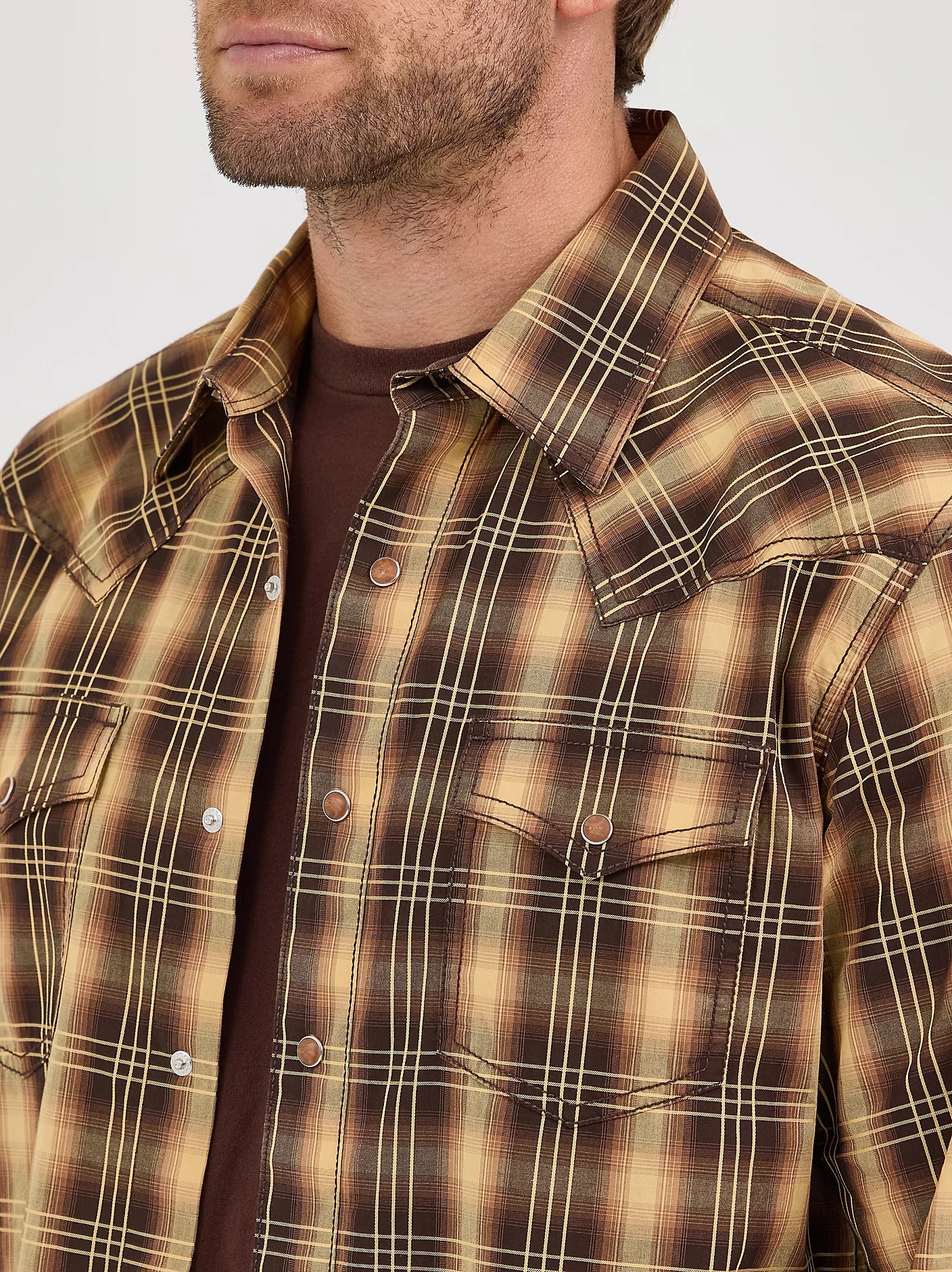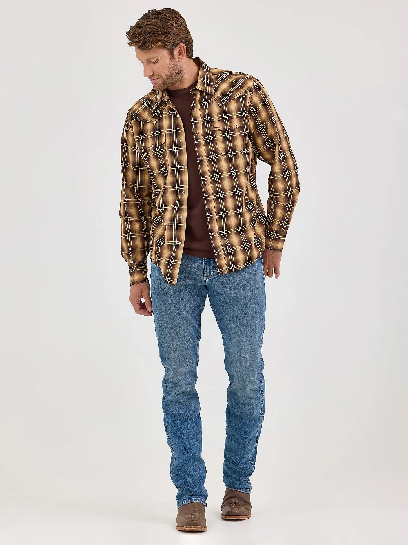 This men's Wrangler Retro® Premium long-sleeve western snap plaid shirt delivers all the authentic western styling you love but with a modern fit that's perfect for the contemporary cowboy. It's crafted from cotton for all-day comfort and long-lasting durability. Plus, it features pointed front and back yokes, contrast trim, snap cuffs, and a full snap closure. You can easily wear this long-sleeve snap shirt all year long, and it looks great layered over a white t-shirt.